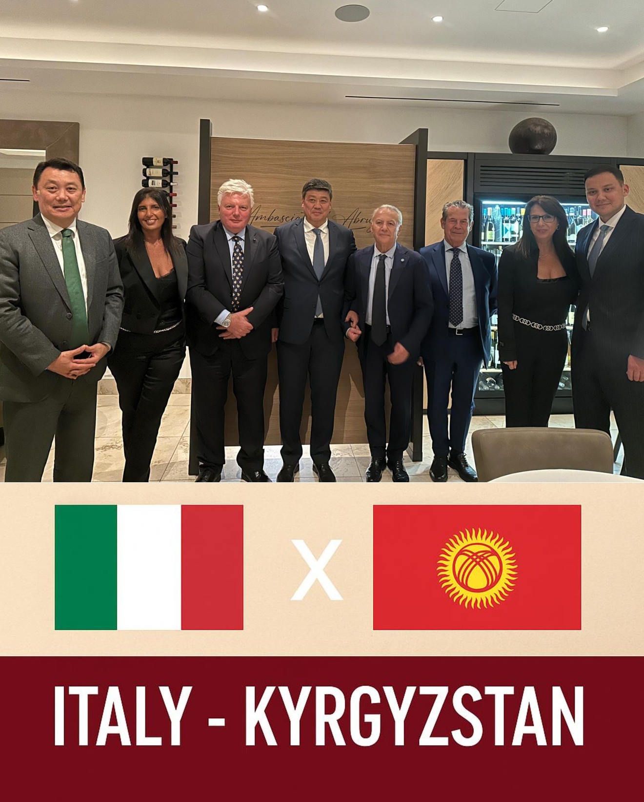 Luigi Carfora, President of Confimi Industria Campania and the Suggestioni Campane Promotion Consortium, recently took part in a high-level institutional meeting in Rome, hosted at the renowned Ambasciata d'Abruzzo restaurant. The event was promoted by the Honorary Consul of the Kyrgyz Republic for the Campania Region, Prof. Antonio Castiello, on the occasion of the official visit of a governmental delegation from the Kyrgyz Republic.